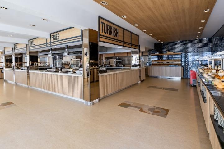 Hotel ima uslugu All Inclusive - doručak, kasni doručak, ručak, večera i ponoćna užina u glavnom restoranu (samoposluživanje - izbor više jela prema hotelskim pravilima). Pored glavnog restorana gostima su na raspolaganju i snack restoran, Pool bar i Lobby bar. U koncept su uključena sva domaća alkoholna i bezalkoholna pića u periodu od 10:00-23:00, obroci u glavnom restoranu , kao i užine u određeno vreme na određenim lokacijama u okviru hotelskog kompleksa.