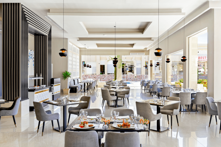 Usluga u hotelu je All inclusive - doručak, kasni doručak, ručak i večera (samoposluživanje – izbor više jela po hotelskim pravilima).  U konceptu su užine, sladoled, kao i sva domaća alkoholna i bezalkoholna pića. Hotel u ponudi ima nekoliko restorana - Saffron (glavni restoran), Soprano (italijanska kuhinja), La' Asiatique (azijska kuhinja) i Sea You (riblji specijaliteti). Gostima su na raspolaganju i barovi - Millenium Sport Bar, White, Red Sky Bar, Cubana Bar, Beach i Red Sky Bar (u hotelu Beach Albatros).