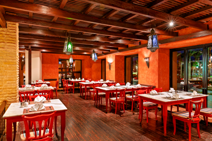 Usluga u hotelu je All Inclusive - doručak, ručak i večera (samoposluživanje - izbor više jela po hotelskim pravilima). U konceptu su užine, lokalna alkoholna i bezalkoholna pića. Hotel u ponudi ima tri restorana - Souq El Hana (glavni restoran), Cardamom i Shamloula (italijanska kuhinja). Gostima su na raspolaganju i barovi - Pool bar, Palm bar, Lobby bar, Snack bar i Beach bar.  A la carte restoran gosti hotela Oasis i Sands imaju pravo na besplatno korišćenje jednom u toku boravka.