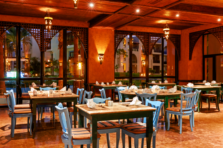 Usluga u hotelu je All Inclusive - doručak, ručak i večera (samoposluživanje - izbor više jela po hotelskim pravilima). U konceptu su užine i lokalna alkoholna i bezalkoholna pića. Hotel u ponudi ima tri restorana - Souq El Hana (glavni restoran), Cardamom restoran na plaži i Shamloula (italijanski restoran). Gostima je na raspolaganju i nekoliko barova - Pool bar, Palm bar, Lobby bar, Snack bar i Beach bar. A la carte restoran gosti hotela Oasis i Sands imaju pravo na besplatno korišćenje jednom u toku boravka.