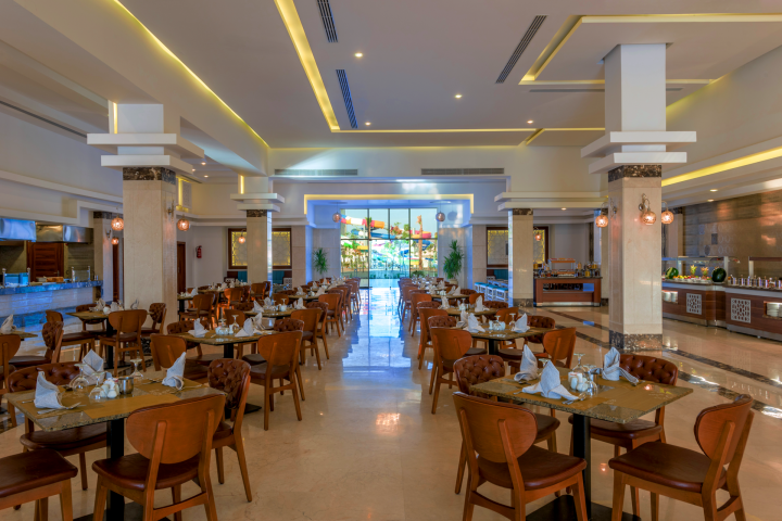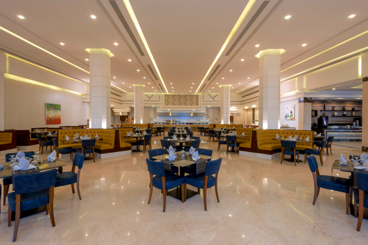 Usluga je All Inclusive – doručak, kasni doručak, ručak, večera (samoposluživanje – izbor više jela po hotelskim pravilima). U konceptu su užine i lokalna alkoholna i bezalkoholna pića. Hotel u ponudi ima nekoliko restorana - Saffron (orijentalna kuhinja), Soprano (italijanska kuhinja), Zum Kaiser (nemačka kuhinja), L' Asiatique (kineska kuhinja), Culina Restaurant (obavezna prethodna rezervacija) i Food Court.