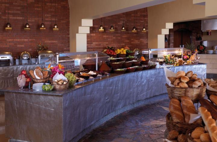Usluga je all inclusive - samoposluživanje, izbor više jela po hotelskim pravilima u glavnom restoranu Sherazade  - doručak (06:30 - 10:00), kasni doručak (10:00 - 11:00), ručak (13:00 - 15:00) i večera (18:30 - 22:00). U koncept su uključene i užine u Dolphin Bar-u (11:00 - 17:00), kafa, čaj, kokteli, kao i lokalna alkohona i bezalkoholna pića u barovima - Bar Zar (10:00 - 23:00), Dolphin (10:00 - 18:00) i Beach (10:00 - 18:00).