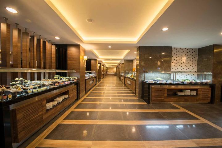 Usluga u hotelu je Ultra All Inclusive, samoposluživanje - izbor više jela prema hotelskim pravilima u glavnom restoranu: doručak, kasni doručak , ručak , večera, kasna večera  i noćna užina , sladoled , gozleme , čaj i kolači , à la carte restoran jednom nedeljno uz obaveznu rezervaciju, lokalna alkoholna i bezalkoholna pića.