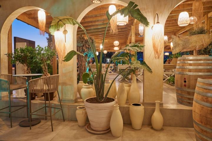 Hotel ima uslugu noćenje sa doručkom. U koncept usluge je uključen doručak u glavnom restoranu u periodu 08:00-11:00. U okviru hotela se nalaze i nekoliko à la carte restorana: Marea fish restoran & bar, Rammos Restoran & bar, Rios steak & bar kao i Ramos beach & lounge bar na plaži. U koncept usluge je uključen samo doručak, sve ostalo je uz doplatu.