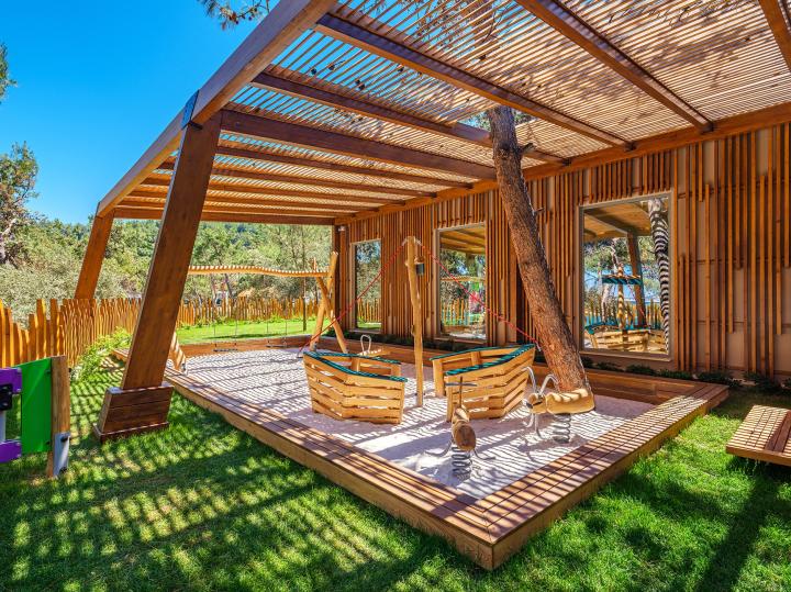Hotel ima svoju 200m dugu peščanu plažu sa plavom zastavicom EU koja je 2021. proširena i ponton veličine 500m² koji je namenjen samo za odrasle. Upotreba suncobrana i ležaljki je besplatna.