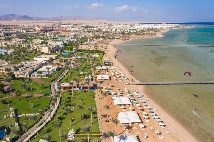 Hotel se nalazi na svojoj 320m dugačkoj plaži. Jedan manji deo je sa koralnim grebenom, što privlači veliki broj zaljubljenika u podvodni svet a veći deo je lepo uređena kupališna zona sa plitkom vodom i postepenim ulazom te se preporučuje obuća za plažu.