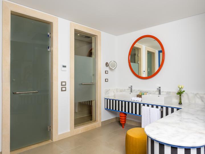 Deluxe suite sobe (100–105 m²) sa tri kupatila i prostranim dnevnim prostorom.