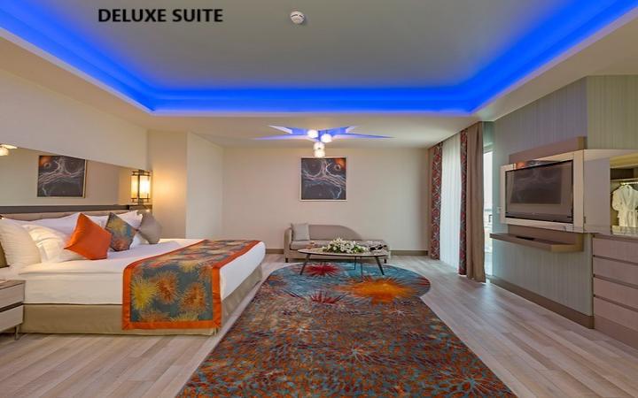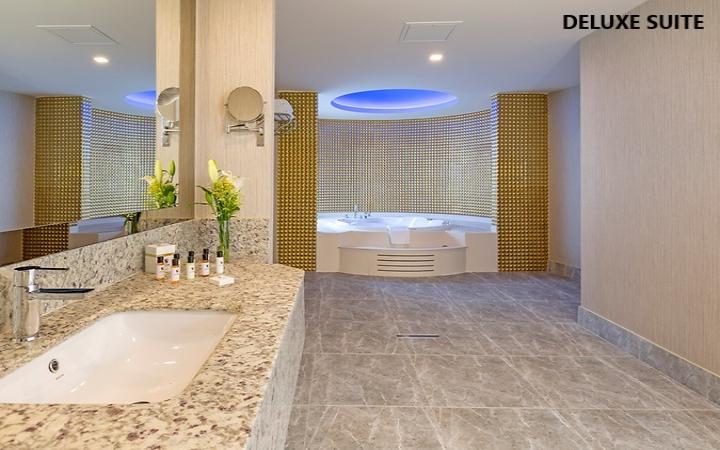 Deluxe suite je površine 170m2 sa hodnikom na ulazu i sastoji se od jedne spavaće sobe i jedne dnevne sobe koje su povezane vratima i dva kupatila. Kupatilo u spavaćoj sobi je opremljeno tuš kabinom koja ima funkciju parnog kupatila, WC i jacuzzi-jem, dok je u dnevnoj sobi kupatilo opremljeno tušem i WC-om.