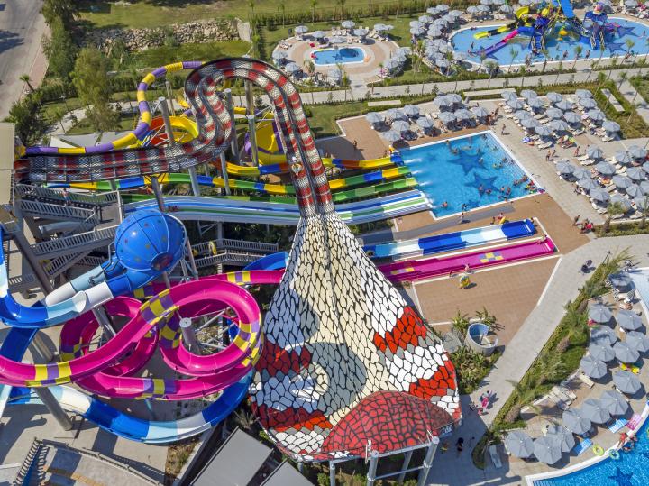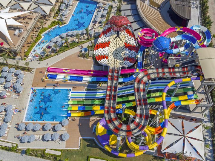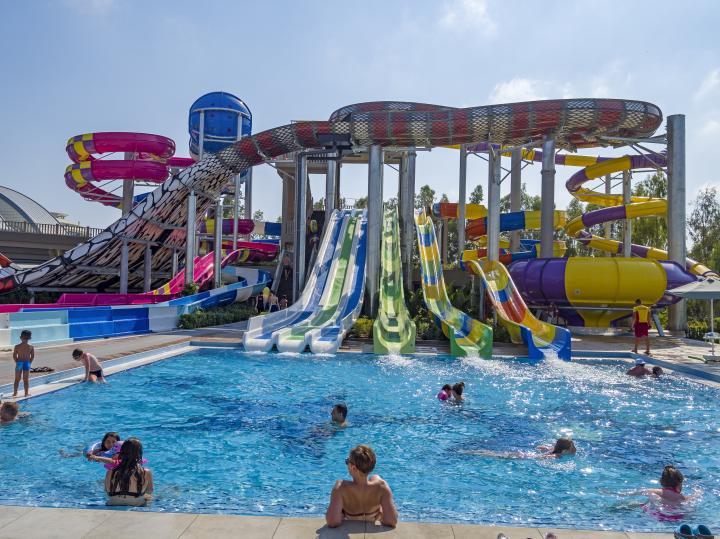 Hotel ima glavni bazen (2.308m²), poluolimpijski (312m²), bazen sa toboganima i zatvoreni bazen koji se greje u zimskom periodu. Dečiji bazen (50m²) i dečiji bazen sa toboganima.