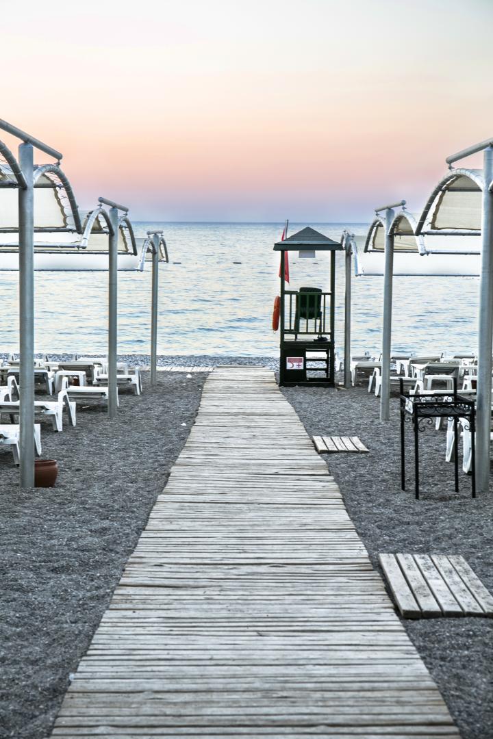 Hotel ima svoju 70m dugu peščano-šljunkovitu plažu nagrađenu plavom zastavicom. Suncobrani, ležaljke, i peškiri se ne plaćaju. Peškiri se dobijaju uz depozit.