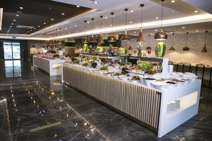 Hotel ima uslugu Ultra All Inclusive - doručak, kasni doručak, ručak, večera, ponoćna užina (samoposluživanje - izbor više jela po hotelskim pravilima). Gostima su na raspolaganju italijanski à la carte restoran "Basilico", riblji à la carte restoran "Chapa", snack restorani, poslatičarnica "Pine" i više barova.