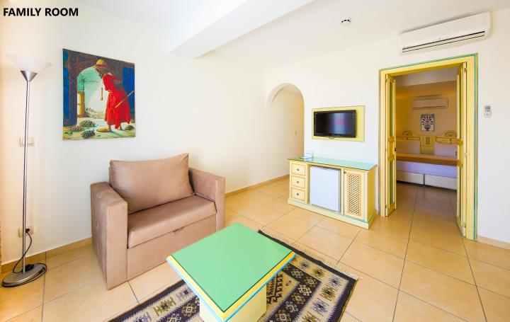 Standardne sobe su veličine oko 25 m2, family sobe su veličine oko 40 m2 i mogu imati pogled na baštu ili more.