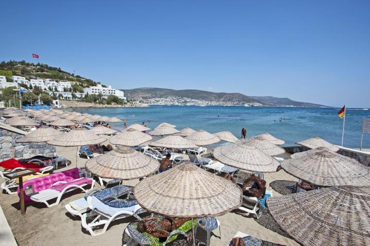 Hotel je otvoren 1996. godine a poslednji put renoviran 2013. godine. Zauzima površinu od 22.000m2, sastoji se od 6 zgrada i ima 212 soba. Gostima su na raspolaganju bazeni, à la carte restoran, glavni restoran, nekoliko barova, fitness i Spa centar. Ovaj hotel ima odličnu lokaciju jer se nalazi tačno između Gümbeta i Bodruma (u neposrednoj blizini poznatih vetrenjača), tako da je preporuka onima koji vole d abudu u centru dešavanja i koji vole šetnju s obzirom na to da se hotel nalazi na pešačkoj udaljenosti od oba mesta. Urađen stilski u bojama Bodruma (plavo-belo) ostavlja poseban utisak na goste te će gosti ovde moći da osete pravu kombinaciju grčkog i turskog stila.