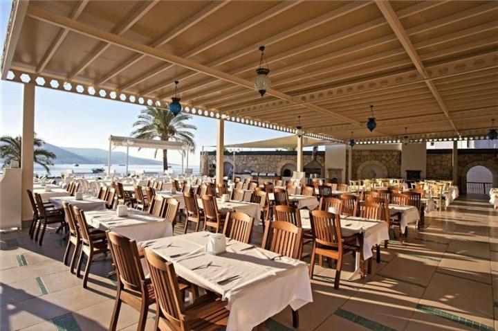 Hotel ima riblji à la carte restoran (besplatno jednom u toku boravka od minimum 7 noći uz prethodnu rezervaciju) i nekoliko barova - Lobby bar, Beach bar , Snack bar i Pool bar. U koncept su uključeni i užine, gozleme, sladoled, čaj, kafa, kolači, voće i lokalna alkoholna i bezalkoholna pića.