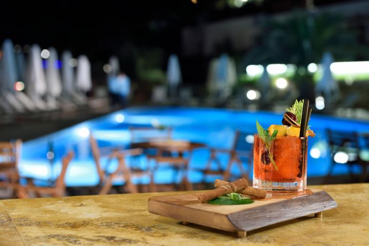 Hotel nudi uslugu A la carte All Inclusive- Posluživanje je prema konceptu usluge a la carte u glavnom restoranu "Sunset" za doručak, ručak i večeru. U koncept usluge su uključeni obroci u restoranu (doručak, ručak i večera u određenim vremenskim intervalima) koji gosti mogu da biraju prema hotelskom meniju, određena uvozna i domaća pića prema hotelskom izboru. Gosti mogu da koriste i usluge Beach bara, Pool bara i Wine cave bara na upit. A la carte All Inclusive koncept je u trajanju 07:30-00:00.