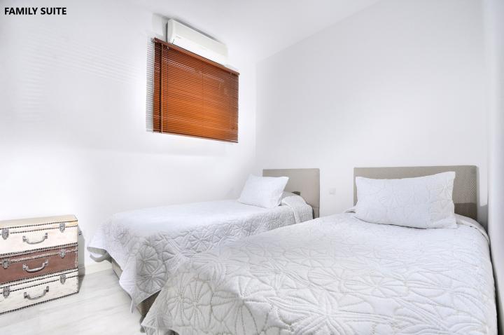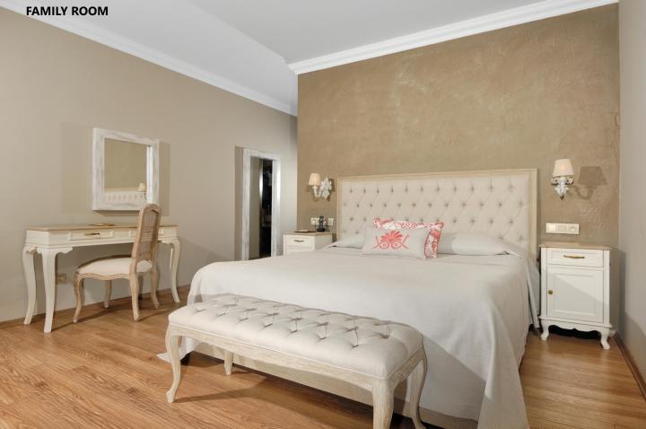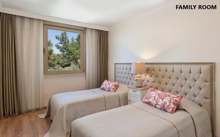 Family soba ima površinu 60m2, ima dve spavaće sobe gde se u jednoj nalazi francuski krevet a u drugoj sobi dva odvojena kreveta, kupatilo sa tušem i prostor sa garniturom za sedenje.