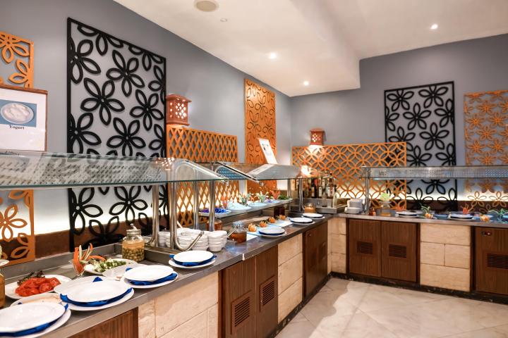 Usluga u hotelu je All Inclusive – doručak, ručak i večera (samoposluživanje – izbor više jela, po hotelskim pravilima). U konceptu su užine i lokalna alkoholna i bezalkoholna pića. Hotel ima nekoliko restorana - glavni restoran, Beach Restaurant, Layali Egyptian Restaurant i Sunset International Restaurant. Gostima su na raspolaganju i barovi - Sunrise Lobby Bar, Pool Bar, Snack Bar, Fresh Coctail Bar, Aqua Park Bar i Sport Bar.