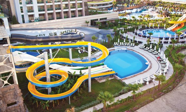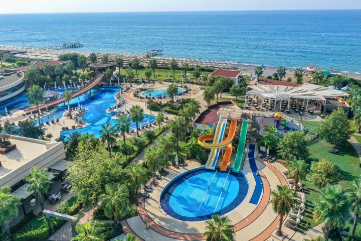 Hotel ima 4 otvorena bazena: glavni bazen, bazen sa 4 tobogana za odrasle, bazen sa 3 tobogana za decu, bazen za bebe. Gostima su na raspolaganu zatvoreni bazen sa delom za decu i jacuzzi-jem, odbojka na plaži, aeerobik, gimnastika u vodi, košarka, tenis, mini fudbal, boćanje, pikado, fitness centar, dnevna i večernja animacija, Wi-fi u lobiju i javnim prostorijama.