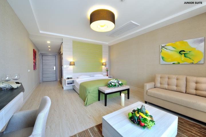 Junior Suite soba ima oko 40-45m2, može da smesti najviše 2 osobe. Nemaju pogled na more ni na bazen, niti poseduju baštu, balkon ili terasu.