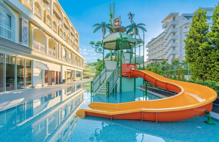 Hotel je otvoren 1998. godine a renoviran 2023. godine i zauzima površinu od 14.000m². Pored glavnog restorana gostima su na raspolaganju à la carte restorani (Lalezar - turska kuhinja, Fangri - mediteranski restoran i Shenzen - azijska kuhinja), Steakhouse i riblji restoran. Gostima su dostupni i barovi u okviru hotelskog kompleksa (Lobby, pool, beach, disco, snack, Sunset bar).