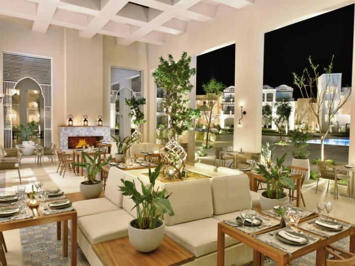 Dine around koncept nudi gostima mogućnost korišćenja četiri a la carte restorana sa Madinat Coraya hotelom (Basilico - italijanski, Zaytoun - orijentalni, Rocca - azijski i Fayrouz - mediteranski), tri bara i bar pored bazena, kao i jedinstveni doživljaj i iskustvo šatora na plaži "Alvalimah" u beduinskom stilu. Gosti mogu birati između internacionalne i egipatske kuhinje i jesti na otvorenom.