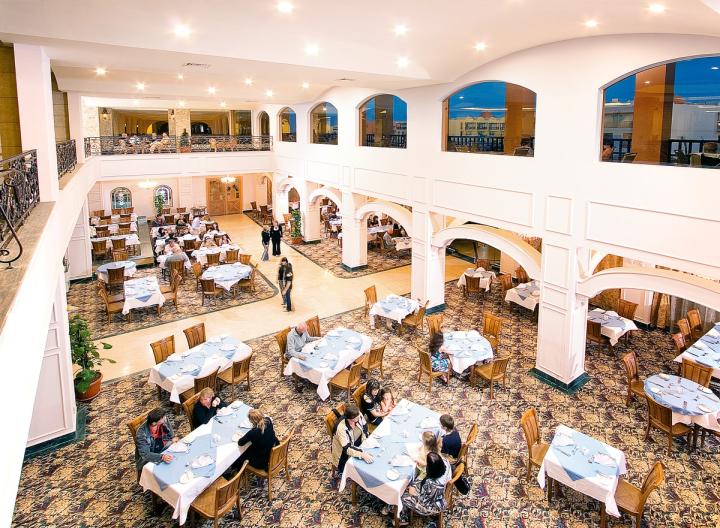 Usluga u hotelu je All Inclusive - doručak, kasni doručak, ručak, večera, kasna večera (samoposluživanje - izbor više jela po hotelskim pravilima). U konceptu su užine, sladoled i lokalna alkoholna i bezalkoholna pića. Hotel u ponudi ima glavni i nekoliko a la carte restorana - Tarboush (egipatska kuhinja), Little Italy (italijanska kuhinja), China Town (kineska kuhinja), Fish (riblji specijaliteti), Indian (u hotelu Titanic Palace), Japanese (u hotelu Titanic Palace), Mexican (u hotelu Titanic Palace).