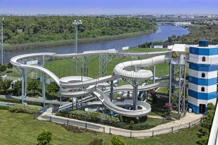 Zatvoreni bazen, zatvoreni dečiji bazen, veliki otvoreni bazen sa morskom vodom, glavni otvoreni bazen, olimpijski bazen po standardima svetske olimpijske federacije, aqua park sa toboganima za decu i odrasle na popvršini od 15000. , nekoliko manjih i dečijih bazena, fitness centar, aerobic, gimnastika u vodi, vaterpolo, fudbal (trava), 3 teniska terena, odbojka, odbojka na plaži, stoni tenis, pikado, boćanje, joga, pilates, nemotorizovani sportovi na vodi, surf uz licencu, animacije i programi, trbušni ples, diskoteka, večernji programi, živa muzika, Wi-Fi, besplatan prevoz do golf terena.