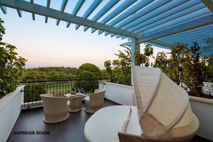 Superior room imaju oko 39m² i mogu imati pogled na reku, baštu ili golf teren.