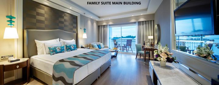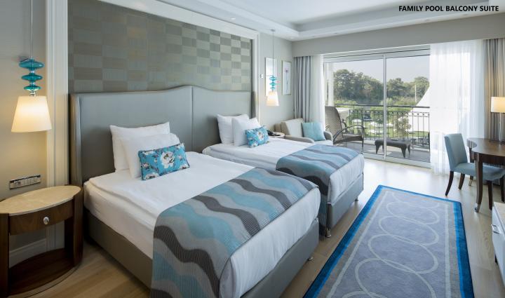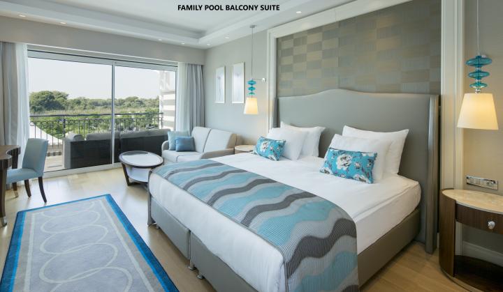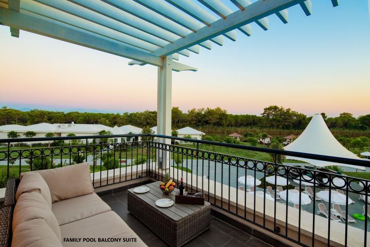 Family pool balcony suite ima 80m², nalaze se u trospratnim vilama i u 7.bloku. Sastoje se iz dve sobe, dva kupatila i balkona sa mogućnošću korišćenja zajedničkog bazena.