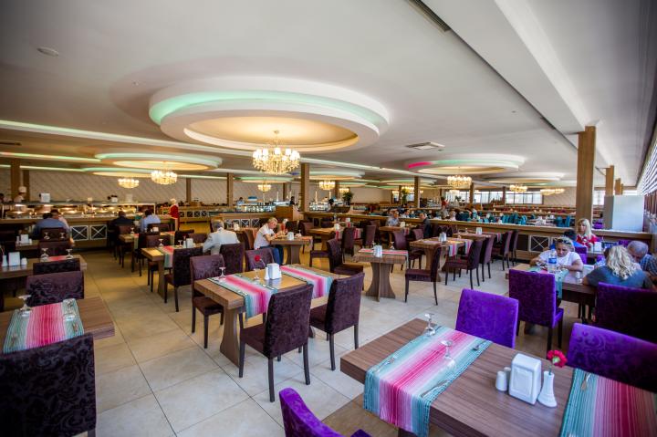 Usluga u hotelu je Ultra all inclusive – doručak, kasni doručak, ručak, večera (samoposluživanje – izbor više jela po hotelskim pravilima). Pored glavnog restorana, hotel u ponudi ima a' la carte restoran (rıbljı restoran- dodatno se doplaćuje). U koncept ulaze i užine, turske palačinke, sladoled, topli napici, lokalna alkoholna i bezalkoholna pića.