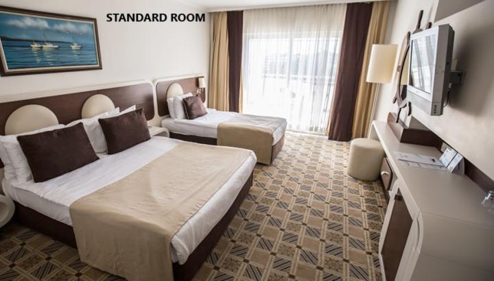 Raspodelu soba u hotelu vrši recepcija po dolasku. Agencija 1 A Travel proslediće Vaše zahteve i želje, ali nije u mogućnosti da garantuje za iste (spratnost, pogled, tip ležaja, tačno određena lokacija u okviru hotelskog kompleksa i slično, udaljenost od plaže, restorana itd., ukoliko u ponudi nije tačno i konkretno istaknuta vrsta i tip sobe). Slike soba u katalogu i na sajtu su date radi informacije. Većina hotela ima nekoliko vrsta soba, tako da smeštaj u hotelu ne mora biti u sobi sa slike. Smeštaj je u standardnim (dvokrevetnim) sobama, osim ako nije drugačije naglašeno.