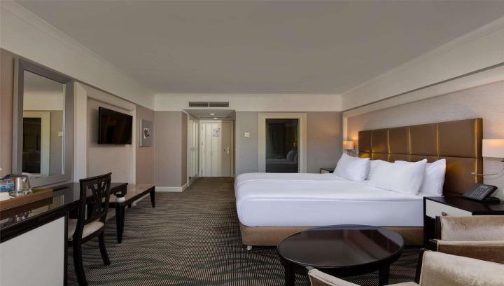 Deluxe sobepovršine 65 m², nude prelepi pogled na more ili na planinu. U spavaćoj sobi se nalazi King Size krevet. Sve sobe su opremljene minibarom koji se napuni bezalkoholnim pićima na dan dolaska, dnevnim kutkom sa sofom i stolom, mermernim podom, centralnim sistemom klimatizacije, balkonom, telefonom sa direktnim biranjem, sefom, IPTV-om, satelitskim i muzičkim kanalima, kao i Wi-Fi konekcijom. Kupatilo sadrži odvojenu tuš kabinu i WC, kozmetičko ogledalo i fen za kosu. Maksimalni kapacitet smeštaja je četiri osobe.