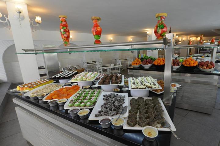 U hotelu je usluga All inclusive – samoposluživanje, izbor više jela u glavnom restoranu: doručak, ručak, užina u periodu od 14:00 do 16:00, kafa i kolači u periodu od 17:00 do 18:00, večera. U koncept su još uključena i lokalna alkoholna i bezalkoholna pića. Hotel ima glavni restoran i bar.