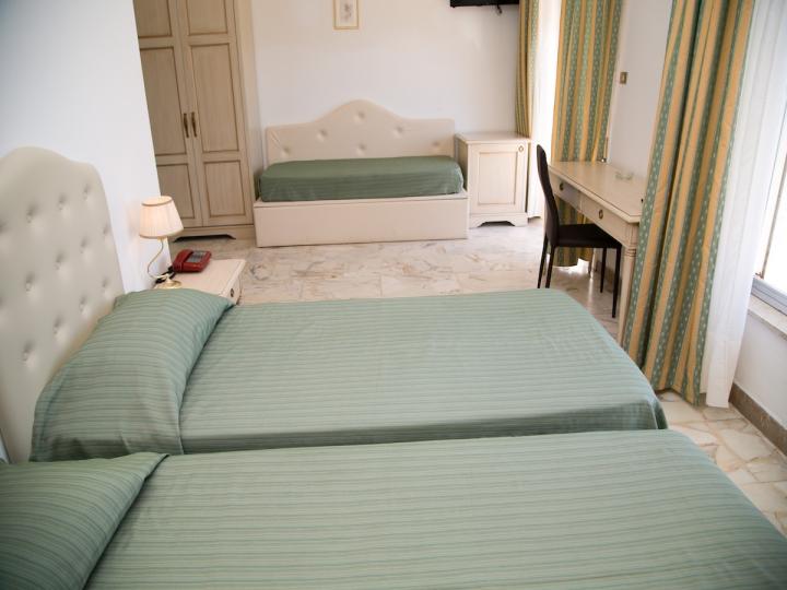 Hotel u svojoj ponudi ima oko 85 - 90 soba. Sobe su uređene u klasičnom stilu i imaju terasu ili balkon, frižider i fen za kosu. Dostupne su i sobe sa pogledom na more (uz doplatu), kao i sobe sa pogledom na vrt.