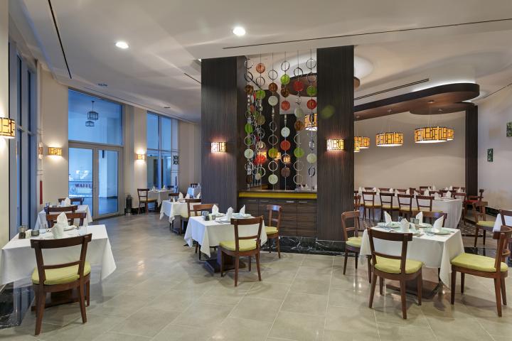 Usluga u hotelu je High Class All İnclusive - all day dining concept-  samoposluživanje - izbor više jela u glavnom restoranu koji je otvoren 24h (doručak, ručak, večera  i  užina  u periodu 22:00-07:00). U koncept usluge su uključeni obroci u glavnom restoranu, užine i poslastice u određeno vreme na određenim mestima u okviru hotelskog kompleksa, lokalna alkoholna i bezalkoholna pića. Pored glavnog restorana u ponudi su i dva à la carte restorana (italijanski i meksički), nekoliko  barova (Archipelago bar, Xanadu bar, Rosebud bar & terrace koji radi 24h, Lobby bar, Sport bar, Beach Bar, Disco bar).