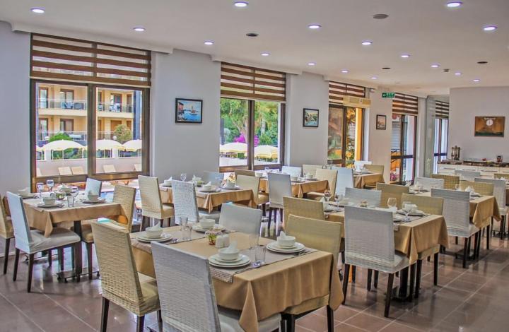Hotel nudi uslugu noćenja sa doručkom i polupansion. U glavnom restoranu doručak/ švedski sto, ručak/ po principu A la carte usluge i služi se u glavnom restoranu i naplaćuje se i  večera/ švedski sto, samoposluživanje – izbor više jela u glavnom restoranu  prema hotelskim pravilima.