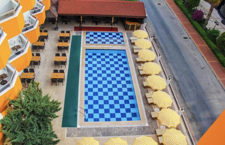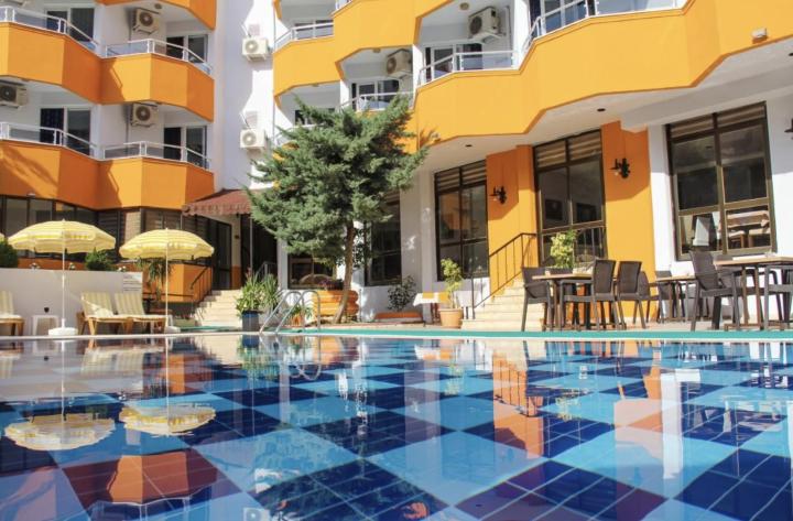 Hotel se sastoji od jedne glavne zgrade i raspolaže sa 44 smeštajne jedinice i 132 smeštajna kapaciteta. Na udaljenosti od centra Alanje je oko 1 km , najbliža autobuska stanica se nalazi 20 m od hotela.